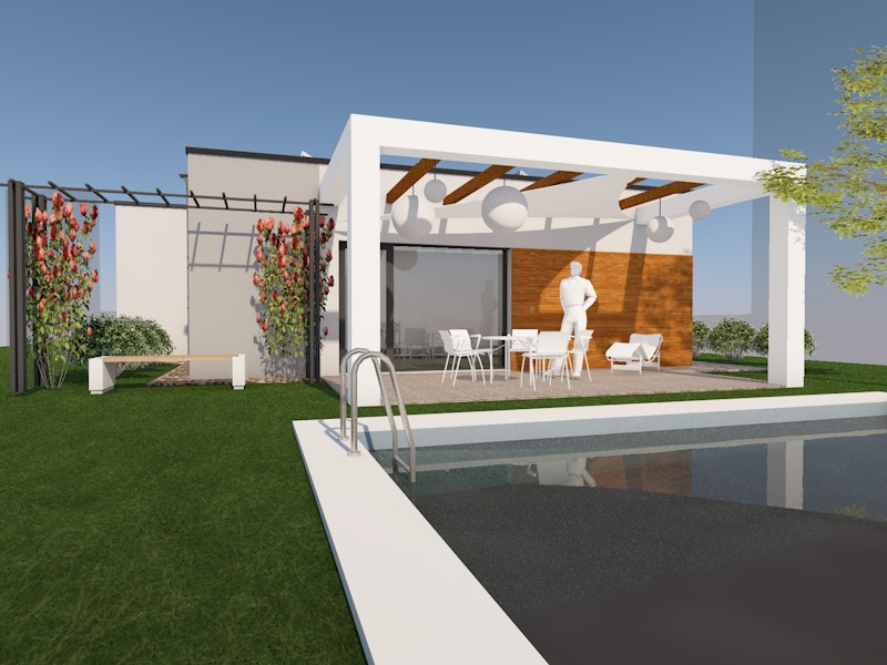 Ez a letisztult, lapostetős, egyszintes családi ház 94,61 m² nettó hasznos alapterülettel és nappali + 3 szobás kialakítással kínál kényelmes életteret. Praktikus megoldásokat rejt, külön WC-vel és világos nappalival. A 20,29 m²-es terasz kiválóan alkalmas a szabadtéri étkezésekhez vagy pihenéshez. Az otthon korszerű technológiákkal felszerelt: hőszivattyús fűtés, napelemes rendszer energiatárolóval, valamint Loxone intelligens otthonautomatizálás biztosítja az alacsony fenntartási költségeket és a kényelmet.